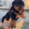 Rottweiler puppies are extremely intelligent ,They are incredibly smart, which makes them highly trainable, and they’re generally very playful, happy dogs. They are usually very protective of their families but they make wonderful and loyal pets. Rottweilers are huge pets, with an average weight of an average of around 100 pounds. fully grown. They are quite active and love to exercise because they were originally bred to be hard-working, protective dogs